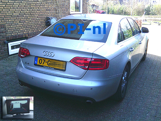 Parkeersensoren (set D 2025) ingebouwd door PI-nl in een Audi A4 sedan met canbus uit 2008. De monitor is van de set met bumpercamera en standaard zilveren sensoren.
