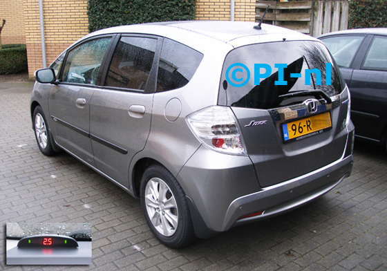 Parkeersensoren (set A 2014) ingebouwd door PI-nl in een Honda Jazz Hybrid Elegance uit 2011. De display werd linksvoor bij de a-stijl gemonteerd.