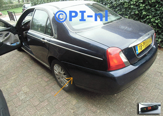 Dode Hoek Parkeersensoren (set DHP/A 2023) ingebouwd door PI-nl in een Rover 75 uit 2004. De display werd linksvoor bij de a-stijl gemonteerd.